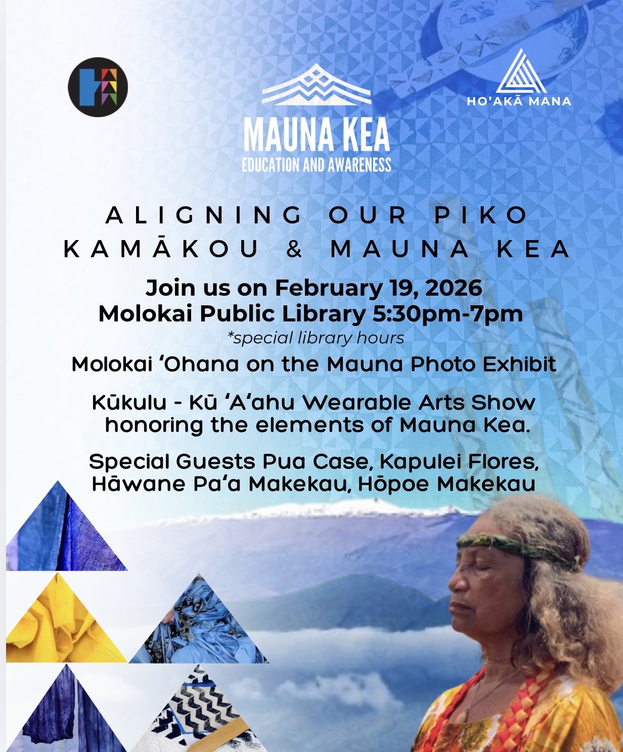Celebrating our Kiaʻi and Aloha ʻĀina of Molokai while aligning piko with Mauna A Wākea. Molokai holds the 26th Kūkulu Exhibit by Mauna Kea Education & Awareness. @MKEA